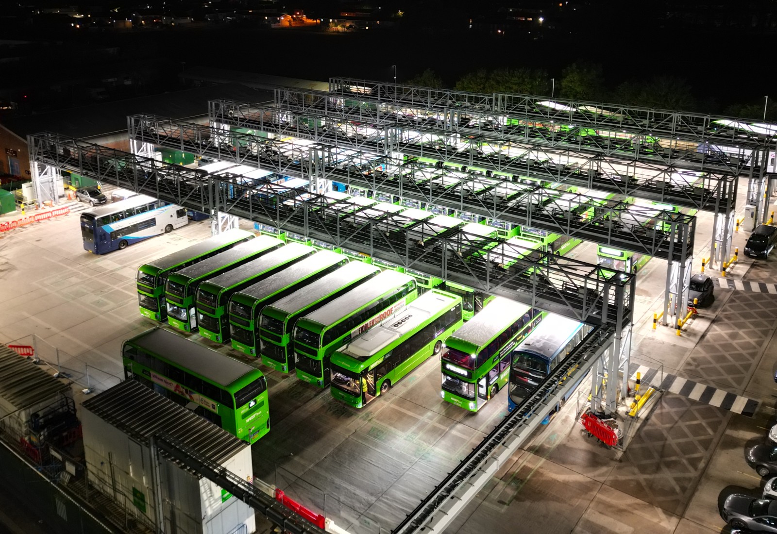 The five double span gantries have been designed to step with the change in level, maintaining the required headroom for clear double decker bus movement underneath and reducing the length of the charging cable. The design also provides additional benefits of keeping the yard free from “ground mounted charger” obstructions, maintaining driver car parking capacities, and allowing for bus driver training functions as well as a range of B2X charging solutions for other vehicles including HGV and Coaches.